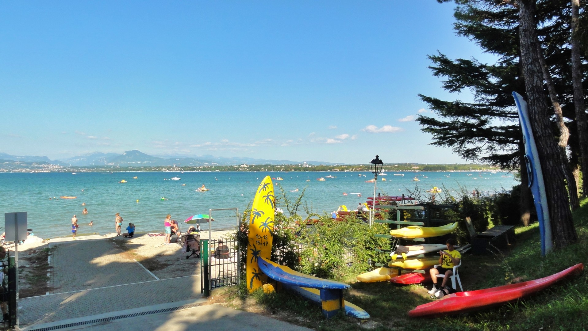 Die Nachbargemeinden sind Castelnuovo del Garda, Desenzano del Garda (BS), Ponti sul Mincio (MN), Pozzolengo (BS), Sirmione (BS) und Valeggio sul Mincio. Seit mehreren Jahren wirbt Peschiera für sich als eine barrierefreie Stadt. Sämtliche Läden sind über eine Rampe auch für Rollstuhlfahrer erreichbar. Ihnen fehlt zwar oft die optimale Steigung, sie sind aber trotzdem eine große Erleichterung für Rollstuhlfahrer.